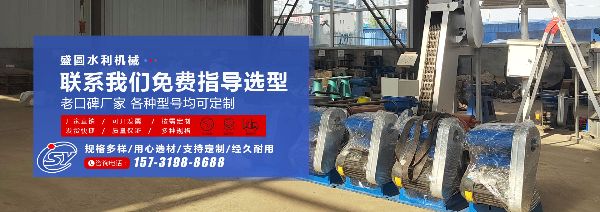 衡水盛圆水利机械有限公司是一家专业设计、制造、批量生产及指导安装水工机械的综合性企业。 我公司集设计、开发、生产、施工为一体,专业生产钢制闸门、铸铁闸门、不锈钢闸门,QL型、QLC型、QLP型螺杆启闭机,QPQ、QPK、QPH、QPT型卷扬启闭机启闭机,玻璃钢拍门、钢拍门、不锈钢拍门、拦污栅、回转式清污机、橡胶止水带等水工产品。 多年来,公司依靠优良的产品质量、合理的产品价格、热情周到的售后服务,产品被广泛用于水利工程项目中,并赢得了广大用户的信赖与赞誉。 主导产品: 1、螺杆式启闭···